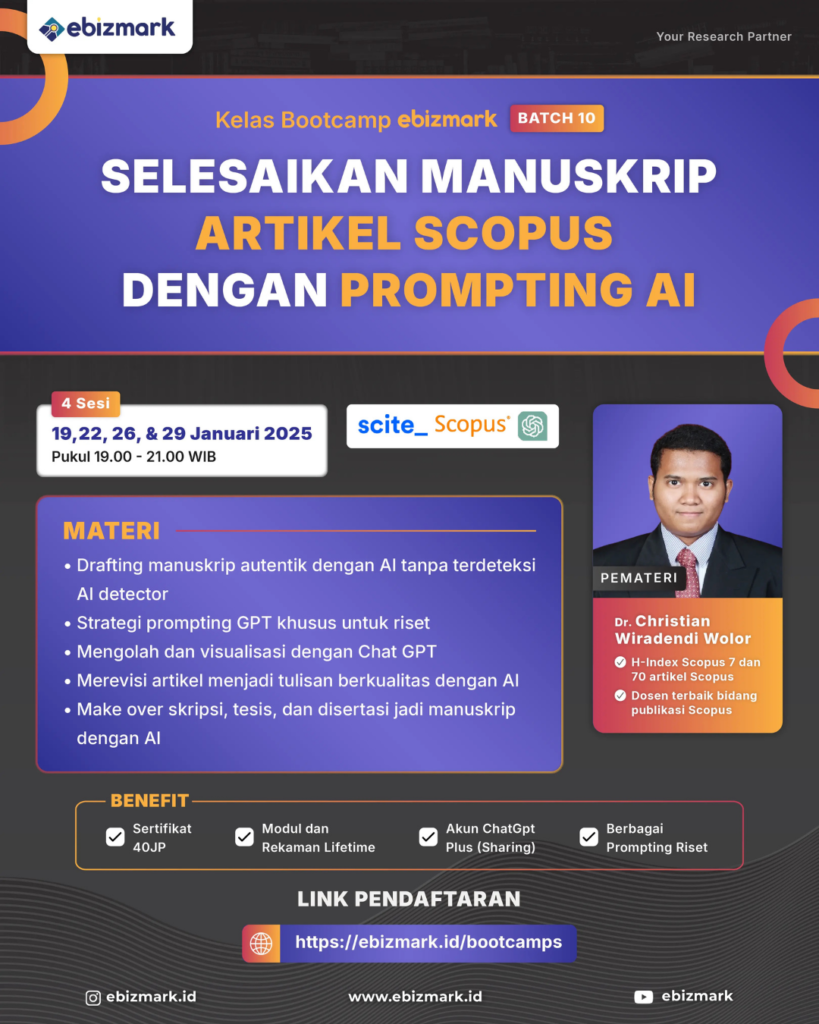 Banyak pelatihan bagi peneliti yang hanya sekedar pelatihan dan “sharing-sharing”, tapi kami berbeda. Ebizmark sudah berpengalaman lebih dari 5 tahun menjaga kualitas dan hasil yang perlu dicapai oleh pesertanya. Beberapa peluang yang akan didapat peserta bootcamp sebagai berikut. Perlu diketahui, hasil luaran sangat bergantung pada setiap progres peserta.