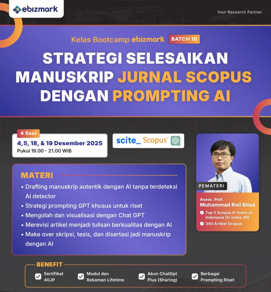 Belajar penulisan artikel ilmiah menggunakan alat bantu Artificial Intelegence (AI) untuk publikasi SCOPUS selama 4 pertemuan bersama ahlinya.