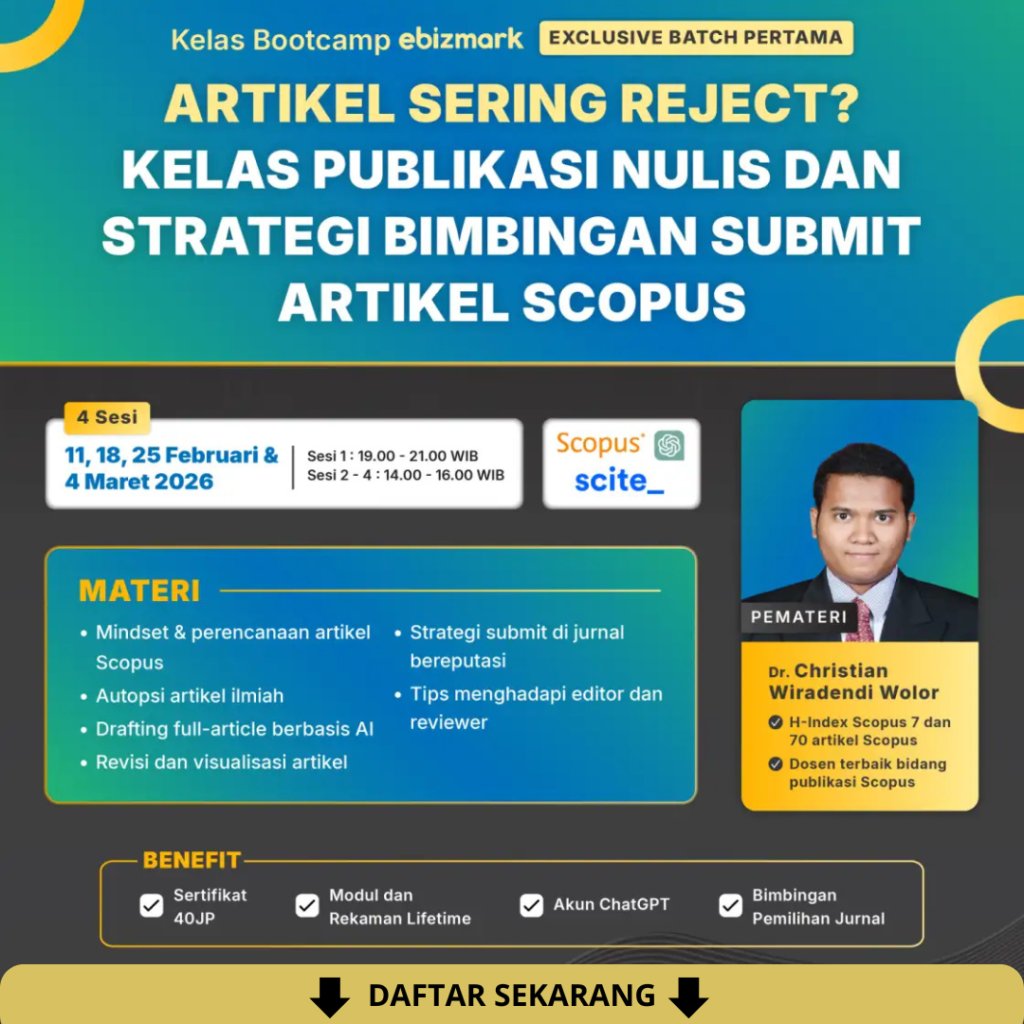 Program pelatihan intensif untuk membantu Anda mengatasi kendala publikasi, mulai dari artikel yang sering ditolak hingga kebingungan memilih jurnal bereputasi yang tepat. Melalui pendampingan terstruktur, Anda akan belajar menyusun artikel ilmiah secara sistematis, memanfaatkan AI untuk drafting dan revisi, serta menerapkan strategi submit yang sesuai dengan standar jurnal Scopus. Pelatihan dilakukan selama 40 jam pelatihan dengan durasi 4 pertemuan.