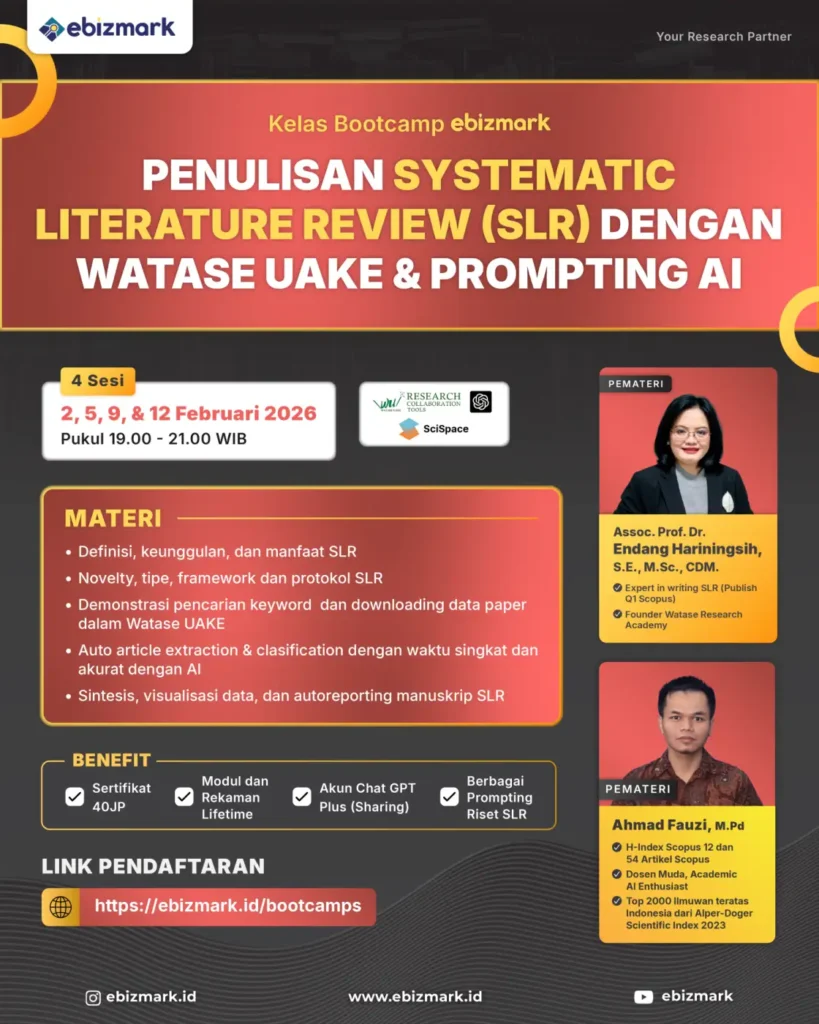 Program pelatihan & pendampingan penulisan artikel systematic literature review dengan Watase. Pelatihan selama 40 Jam Pelatihan dengan durasi 4 pertemuan.